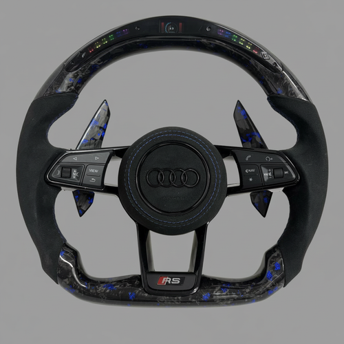 Audi S/RS Steering Wheel w/ Blue Forged Carbon + Alcantara + LED